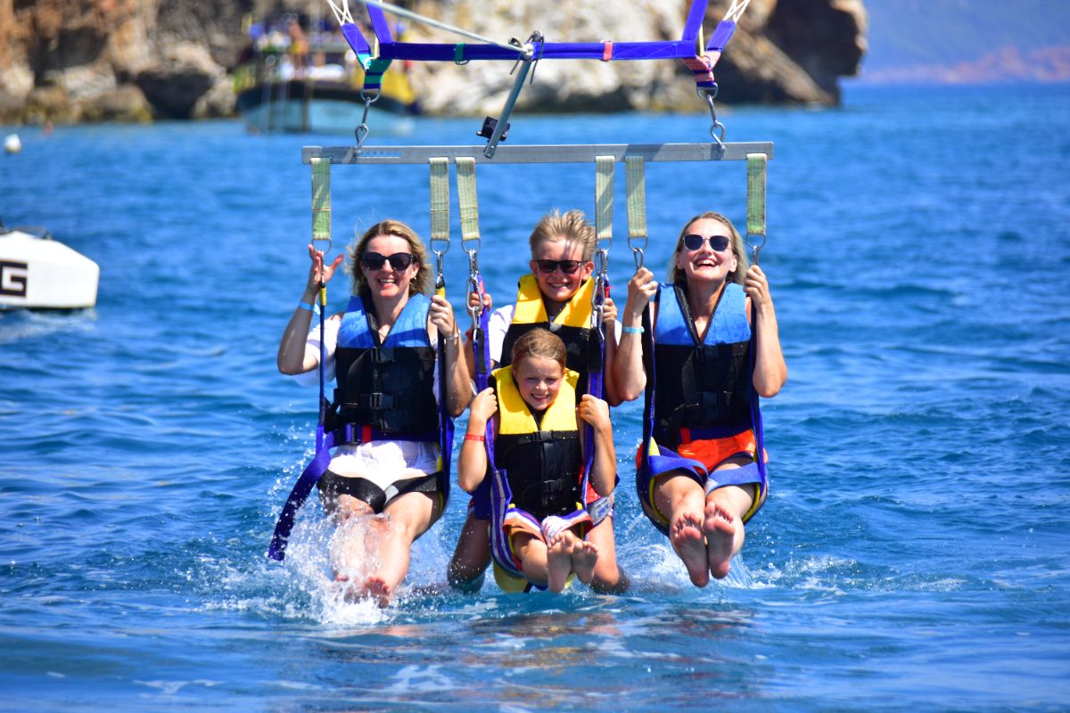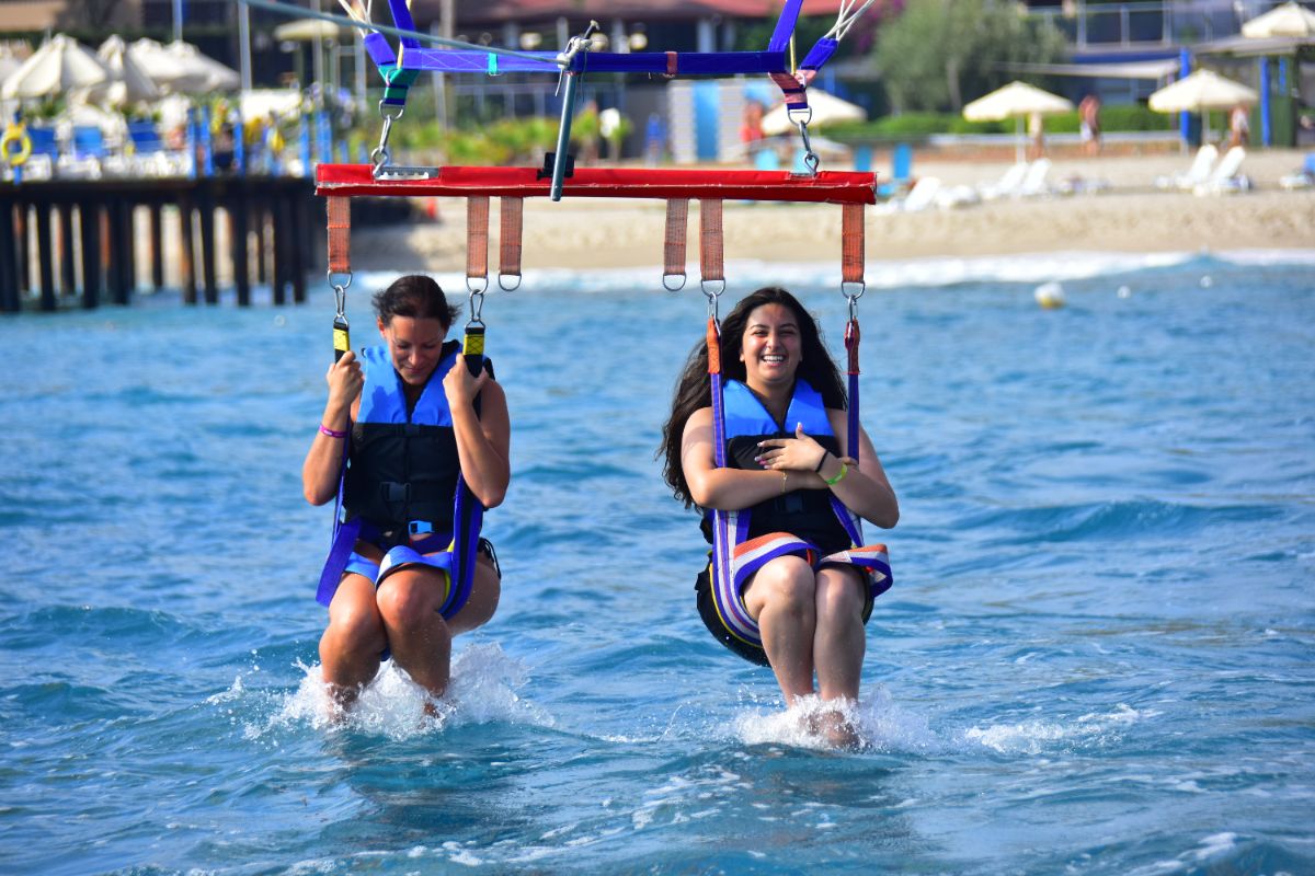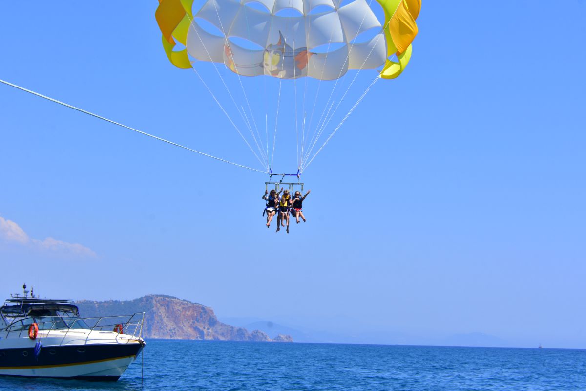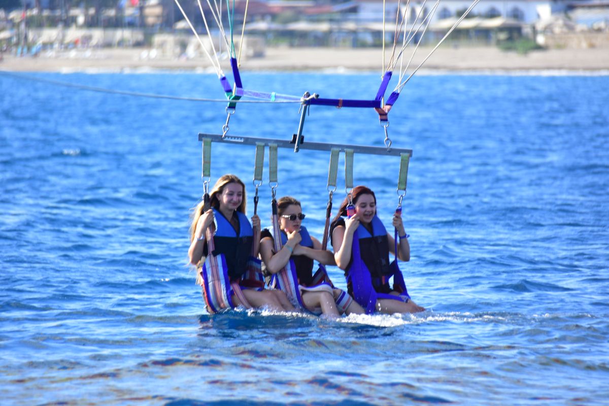 Get a unique, bird’s-eye perspective on the famous coastline of the Alanya Riviera. Alone, or choose to ride tandem with one or two friends or family members. After a safety briefing and lesson on parasailing basics, step into a safety harness and wade out into the warm water of the Numan Water Sports. Your guide will help connect your harness to the giant parasail and a pull rope attached to a speed boat. As the boat pulls forward and your sail fills with elevating air, feel the thrilling sensation of rising up to 165 feet (50 meters) into the sky. Once airborne, enjoy stunning aerial views of the sandy coastline, the expansive blue waters of the Mediterranean, Alanya’s historic streets and the rolling hills of Provençe. After around 7 minutes of unforgettable flight, drift down for a water landing as the pull boat slows to a stop. Emerge back onto the shore at the end of your parasailing experience.