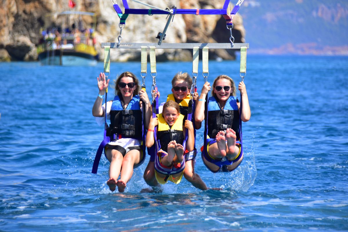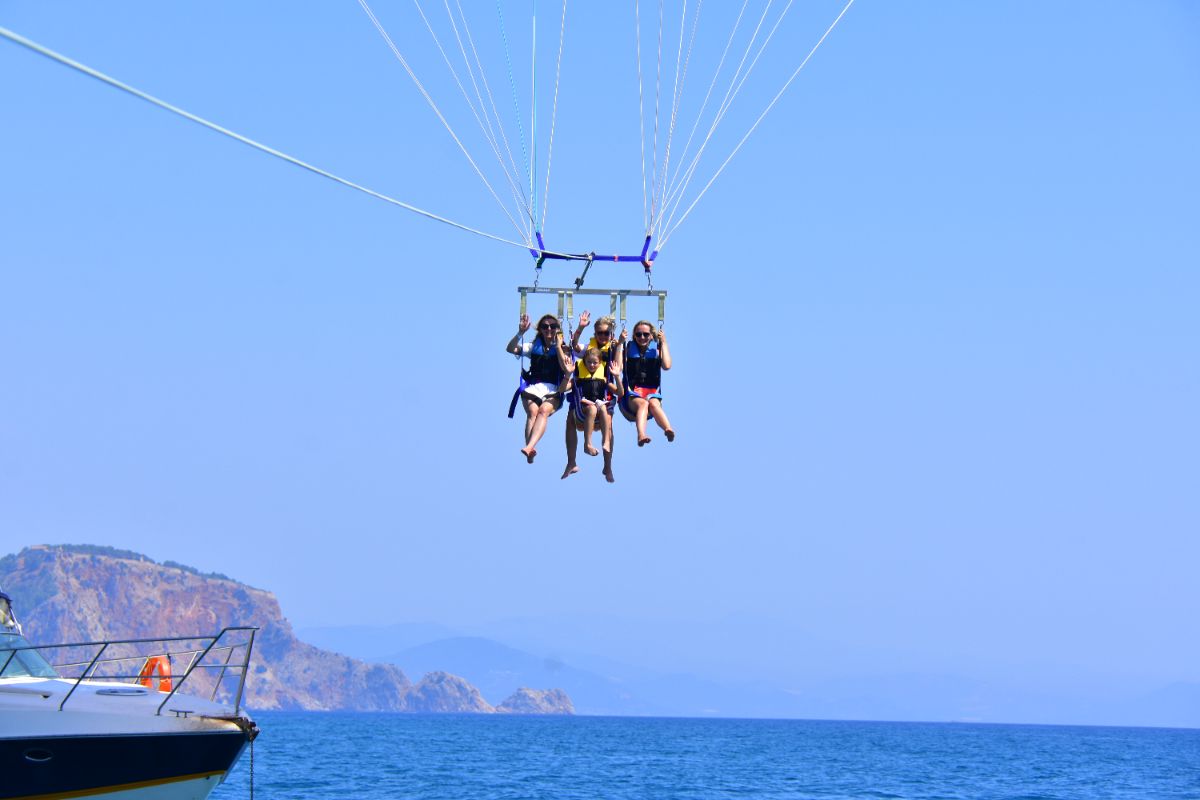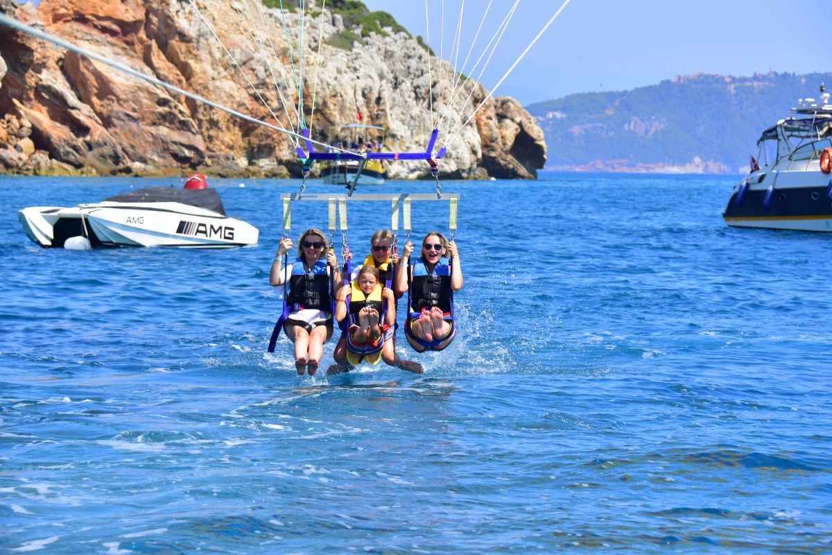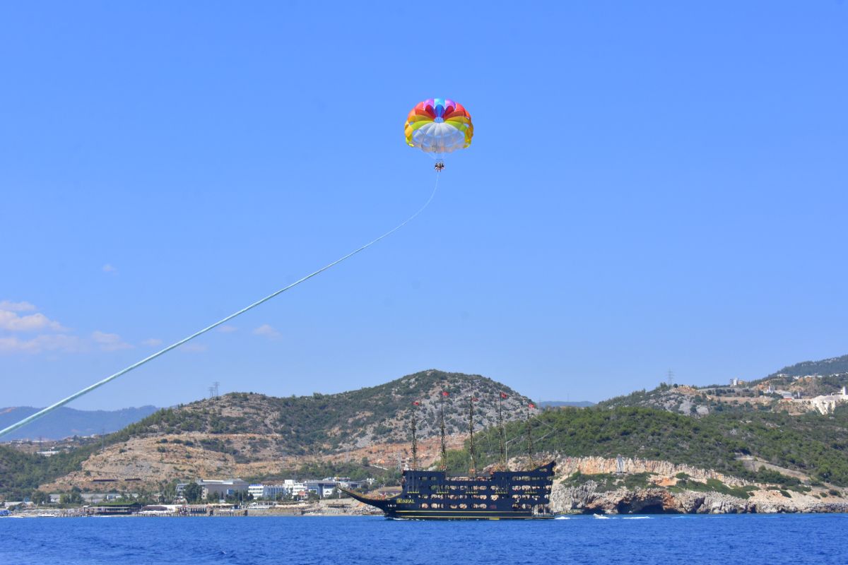 Get a unique, bird’s-eye perspective on the famous coastline of the Alanya Riviera. Alone, or choose to ride tandem with one or two friends or family members. After a safety briefing and lesson on parasailing basics, step into a safety harness and wade out into the warm water of the Numan Water Sports. Your guide will help connect your harness to the giant parasail and a pull rope attached to a speed boat. As the boat pulls forward and your sail fills with elevating air, feel the thrilling sensation of rising up to 165 feet (50 meters) into the sky. Once airborne, enjoy stunning aerial views of the sandy coastline, the expansive blue waters of the Mediterranean, Alanya’s historic streets and the rolling hills of Provençe. After around 7 minutes of unforgettable flight, drift down for a water landing as the pull boat slows to a stop. Emerge back onto the shore at the end of your parasailing experience.